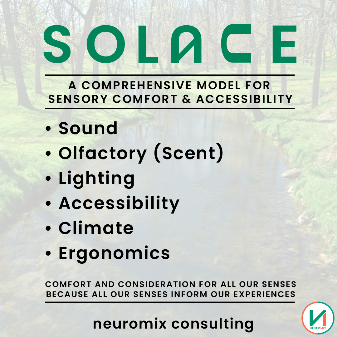 Neuromix designed the SOLACE Model (TM) to evaluate all of these factors collectively and account for the full context of human comfort.